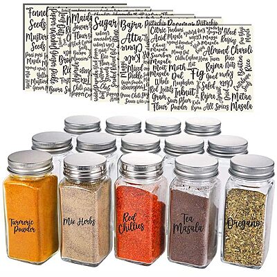 CVANU 288Pcs Spice Label Jar Sticker All Name In Stylish Font Black Color On Clear Self-Adhesive Vinyl Ingredient Labels For Kitchen Containers, 288 Labels